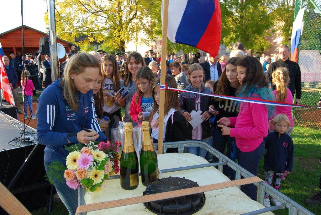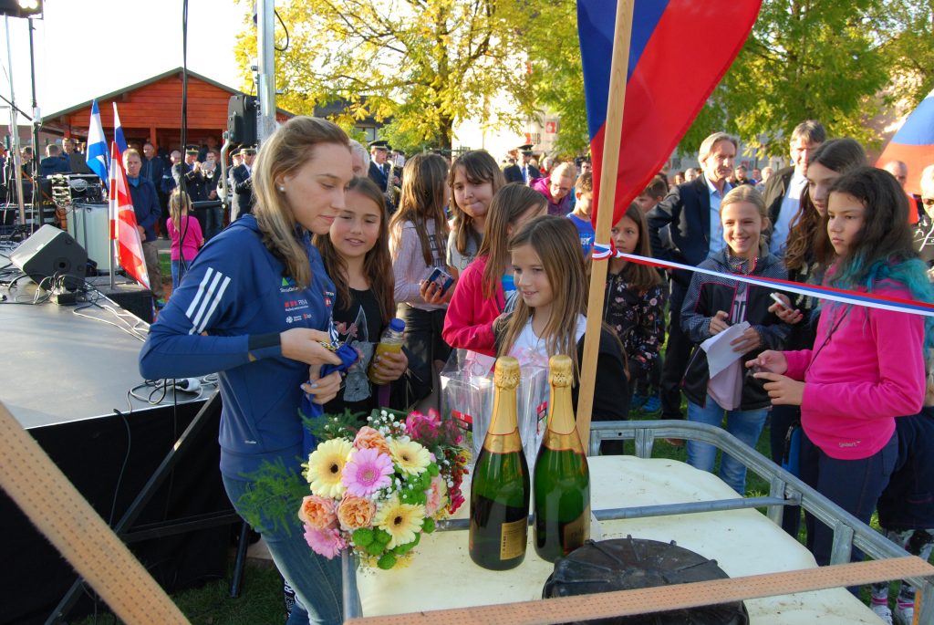 Sprejem za svetovno prvakinjo Janjo Garnbret in otvoritev igrišča za odbojko na mivki